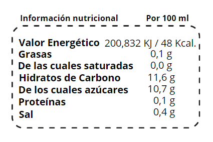 Ingredientes : Mosto de mazá, gasificante (dióxido de carbono)